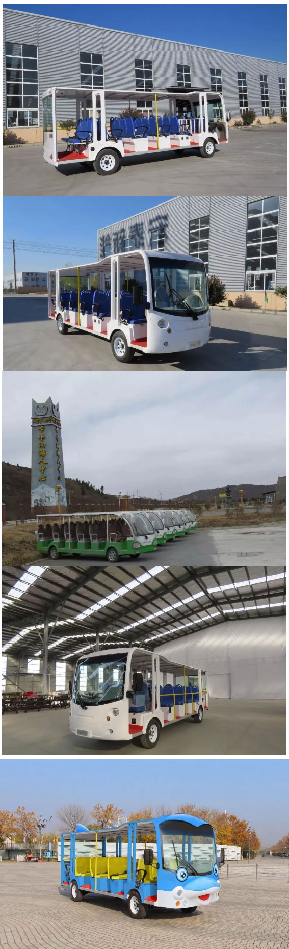 景区根据各自特点,合理配置下面的各种观光车辆,满足景区不同的需求,提升景区运营管理的效率、质量、品质,节约投资成本和后期的运营费用。