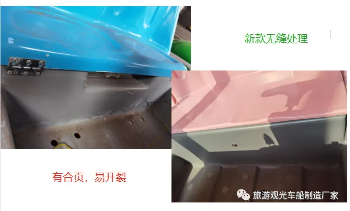 13、整车底盘采用阴极电泳处理,防腐性好,防锈性能好,整车寿命提高20%,玻璃钢车身的代步车没有车架,易变形开裂。